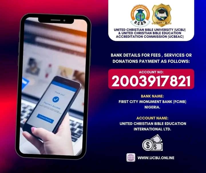 UNITED CHRISTIAN BIBLE UNIVERSITY – BANK DETAILS FOR FEES PAYMENT